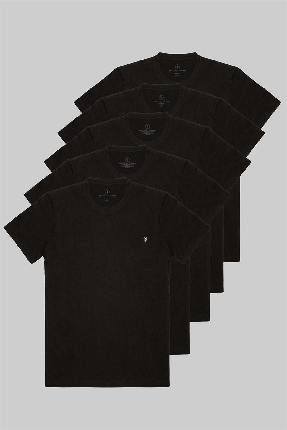 Erkek Basic Siyah 5li Paket Regular Fit Bisiklet Yaka %100 Pamuk 5 li Tişört Paketi (100000)